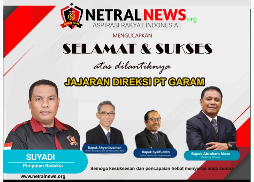 netralnews.org : Sumenep ll Kami segenap jajaran redaksi media netralnews.org Mengucapkan : Selamat dan sukses atas di lantiknya jajaran direksi PT. Garam