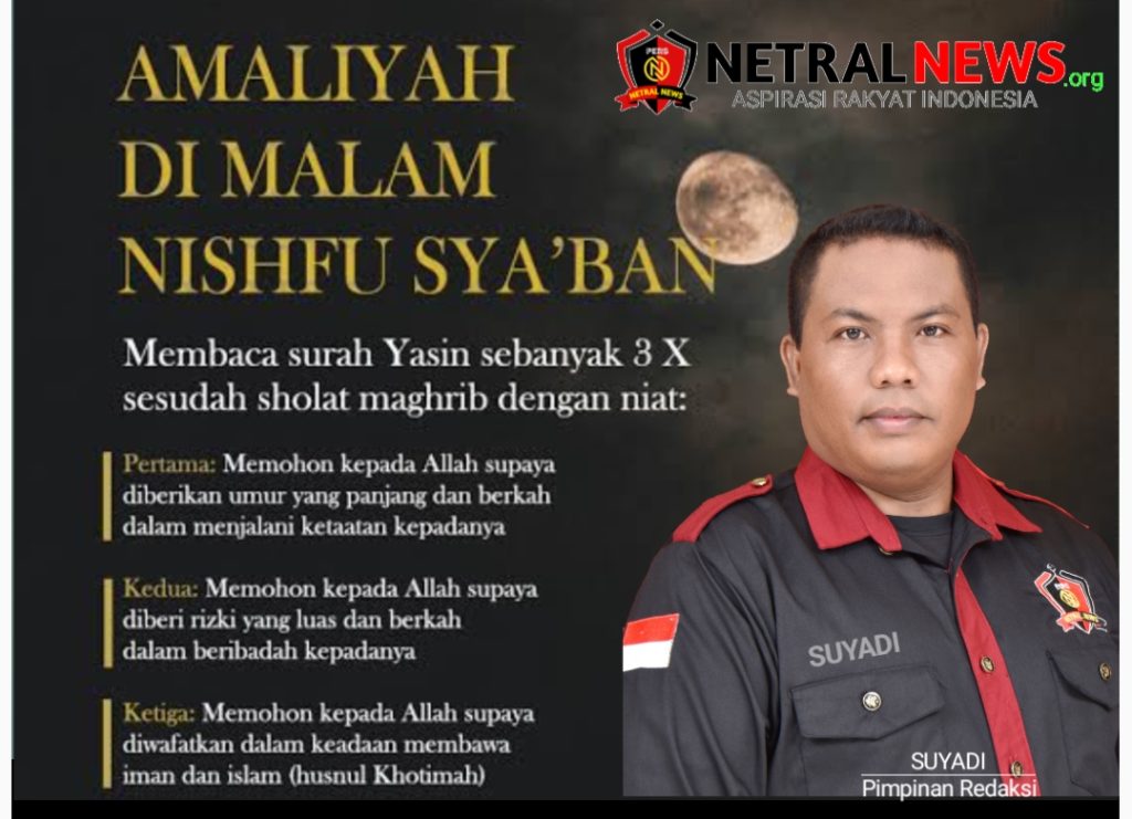 netralnews.org : Sumenep ll Ada beberapa bulan dalam islam yang mempunyai keberkahan dan keanugrahaan di dalamnya salah satunya adalah bulan sya’ban, dan di Dalam bulan Sya’ban terdapat malam yang istimewa yaitu malam Nisfu Sya’ban, yang mana dalam malam tersebut terdapat perbedaan pendapat dari zaman tabi’in hingga saat ini, yang mana jika kita menghidupkan malam tersebut dosa-dosa kita akan di ampuni kecuali dosa syirik dan membunuh.